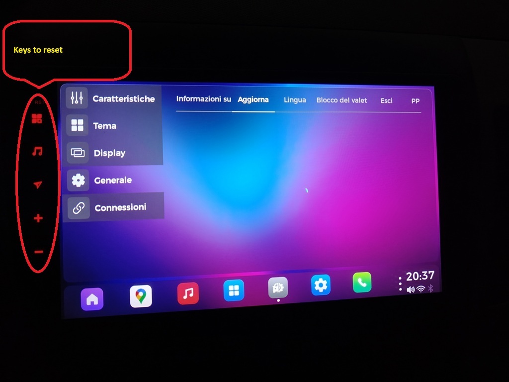 • Hello everyone, I'm posting my request here because yesterday I made a serious mistake when accessing the factory settings with code 126. I essentially changed the touchscreen buttons located on the left of the display (photo attached, circled in red).