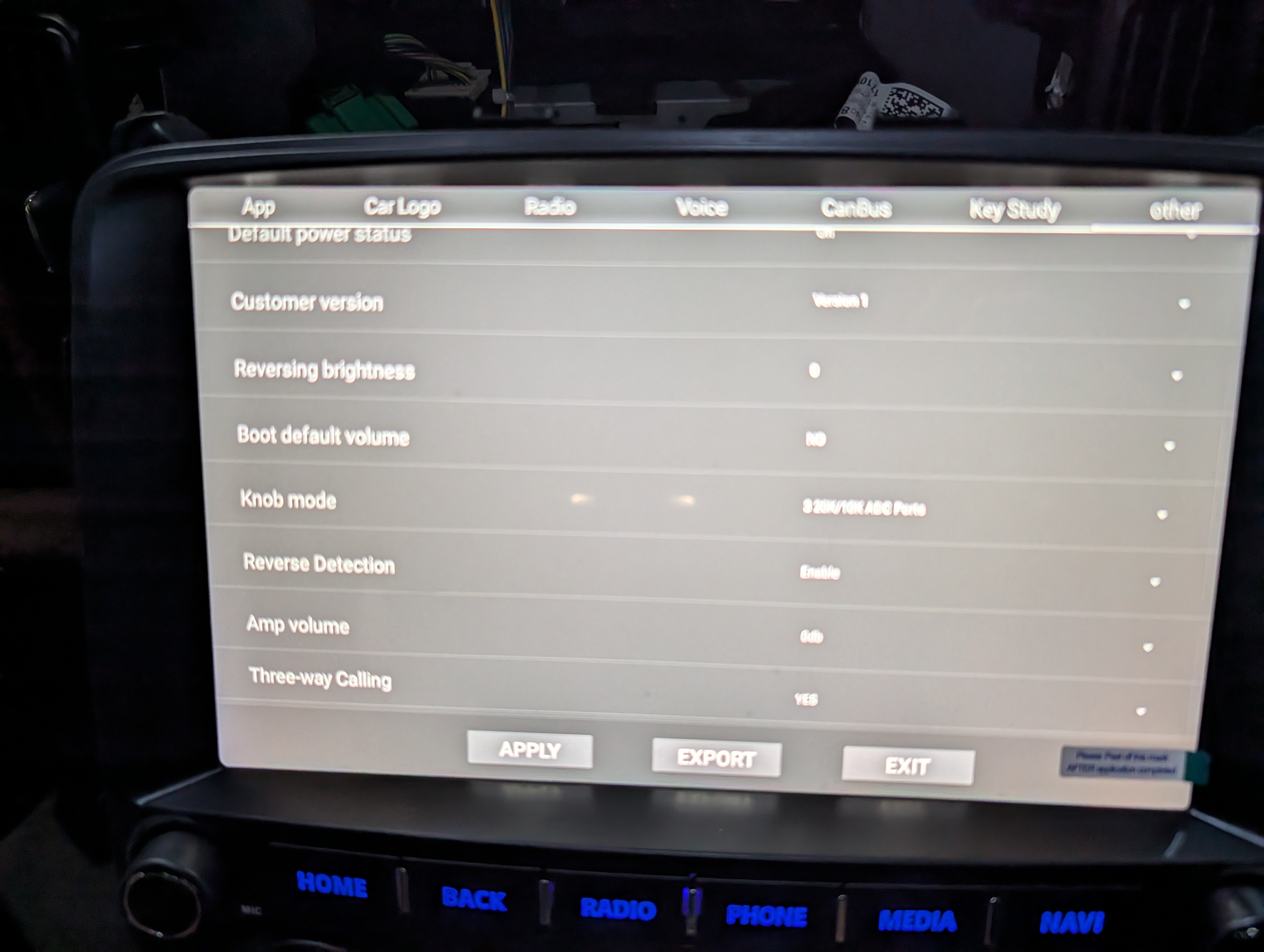 3. Enable Factory Camera: Factory Settings> Other > Prohibit Reverse > Enable, but this setting is not available on my unit.