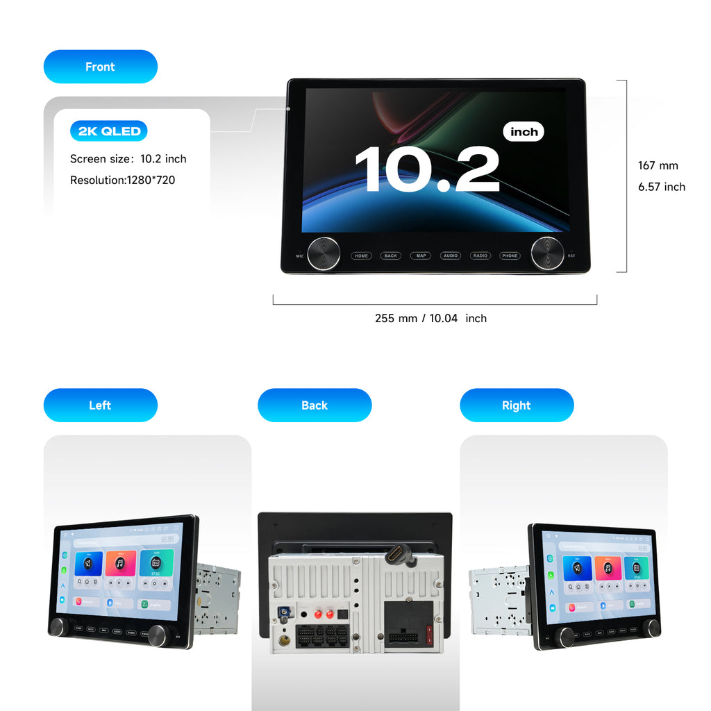 This 10.2" Double DIN universal car stereo is designed to fit vehicles with a standard factory radio opening size of 178mm x 100mm. It delivers a modern touchscreen upgrade with a clean factory-style look and improved functionality.